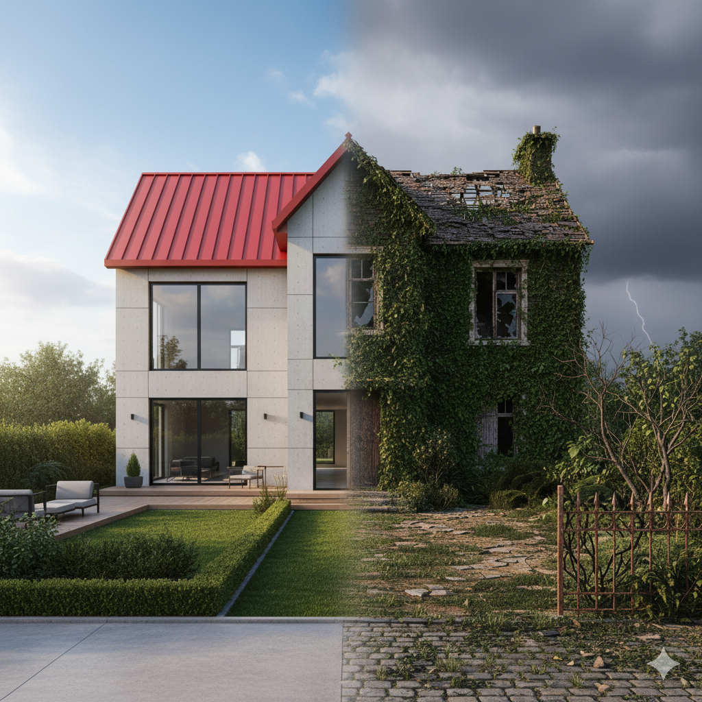 Verfolgen Sie die komplette Transformation dieses Einfamilienhauses – vom Ausgangszustand über den professionellen Rückbau bis zum fertigen Ergebnis.